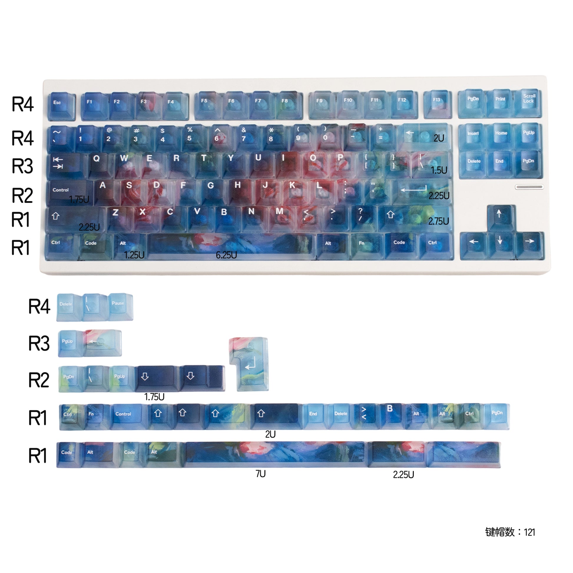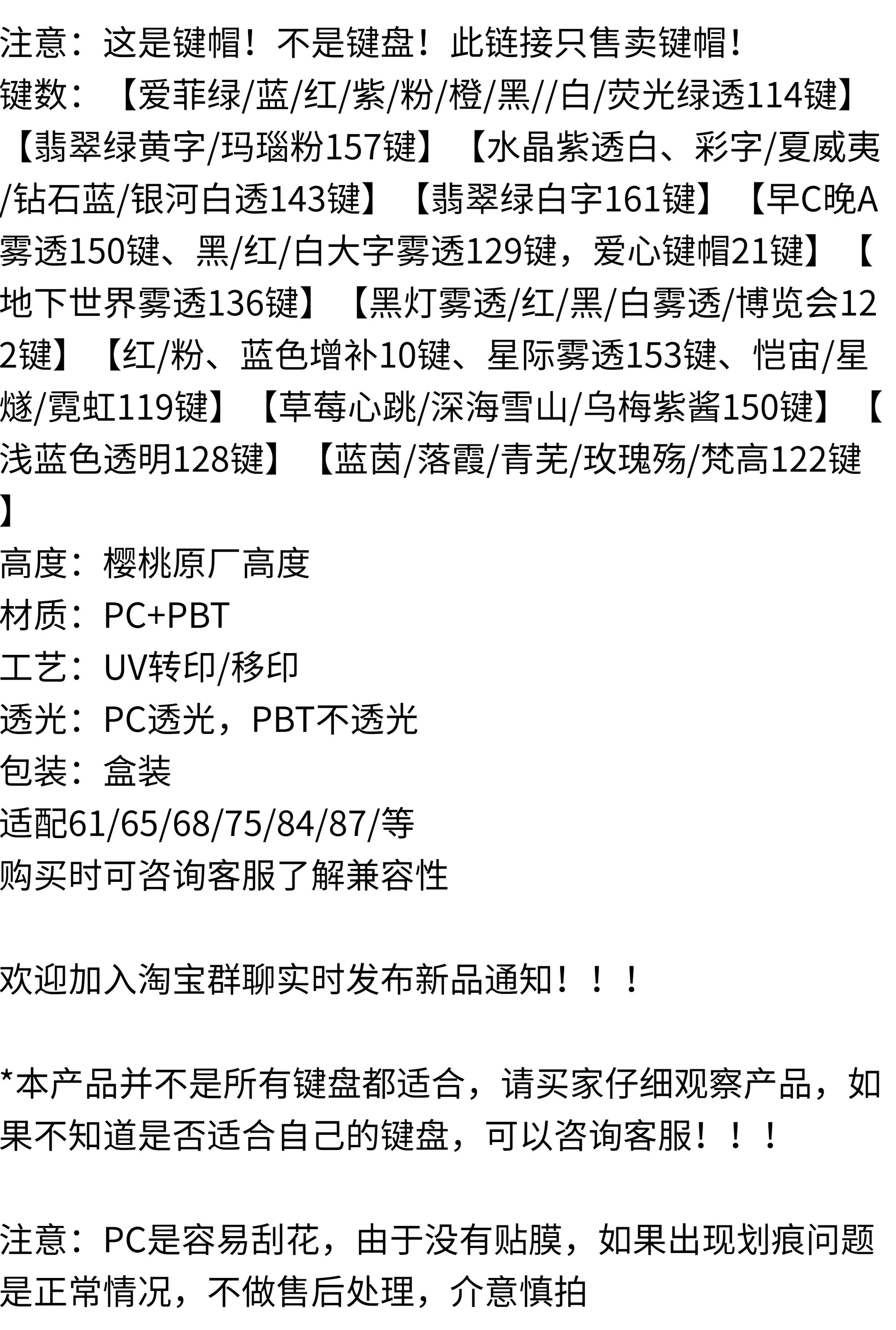 Aifei Keycap Hawaii/Agate Powder/Emerald Green Transparent Mechanical Keyboard Keycaps 157 Key PC Material Pad Printing Cherry Height