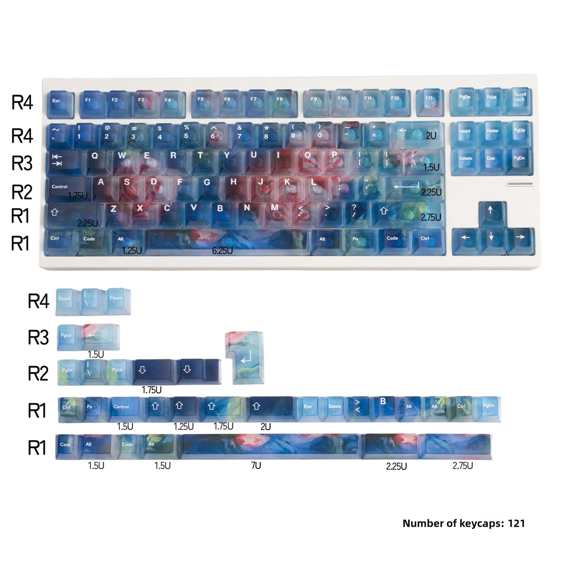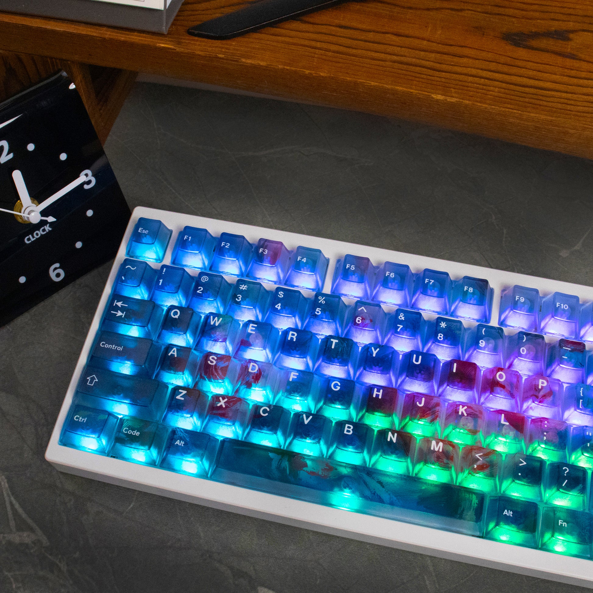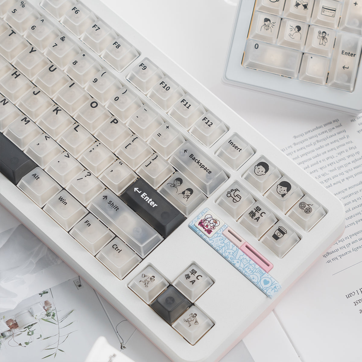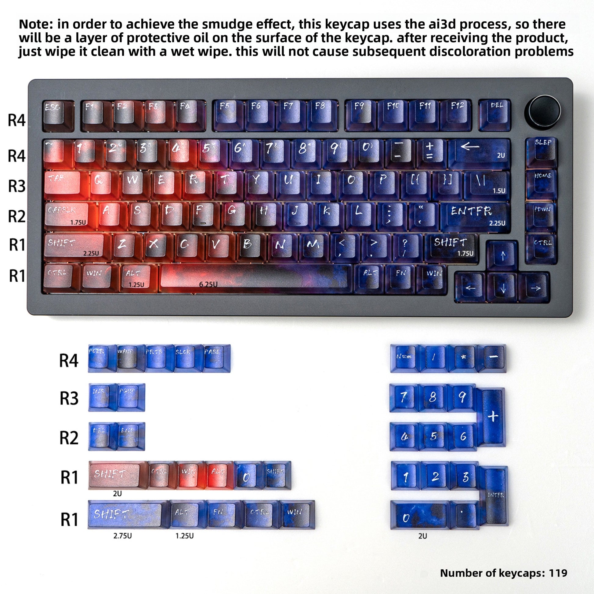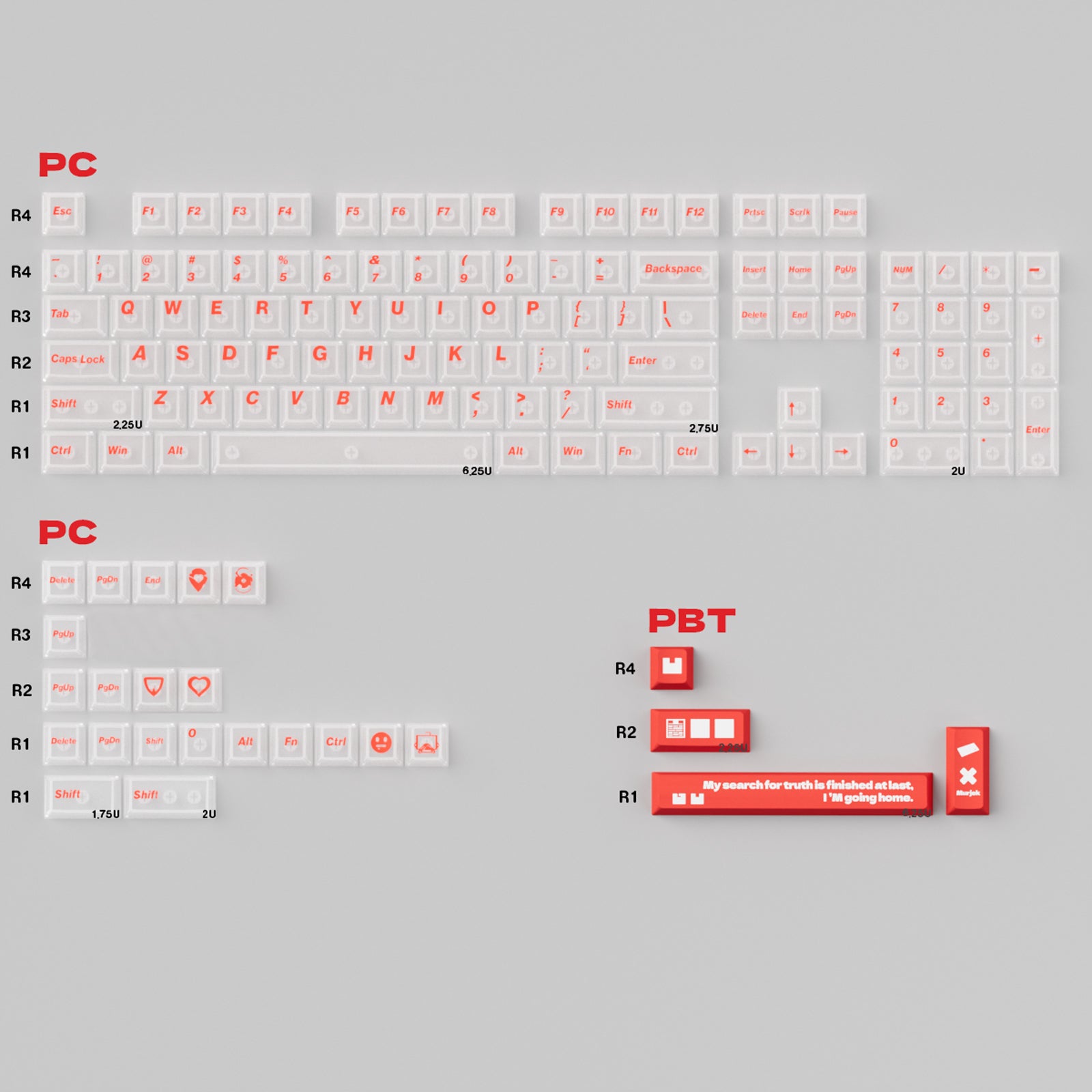 AiFei Keycap Red/Black Five-Sided Matte Translucent Clear Large Character PC Keycap Set Full Set Transfer Printing Cherry Height Early C Late A Suitable for Mechanical Keyboard Hall Effect Keyboard