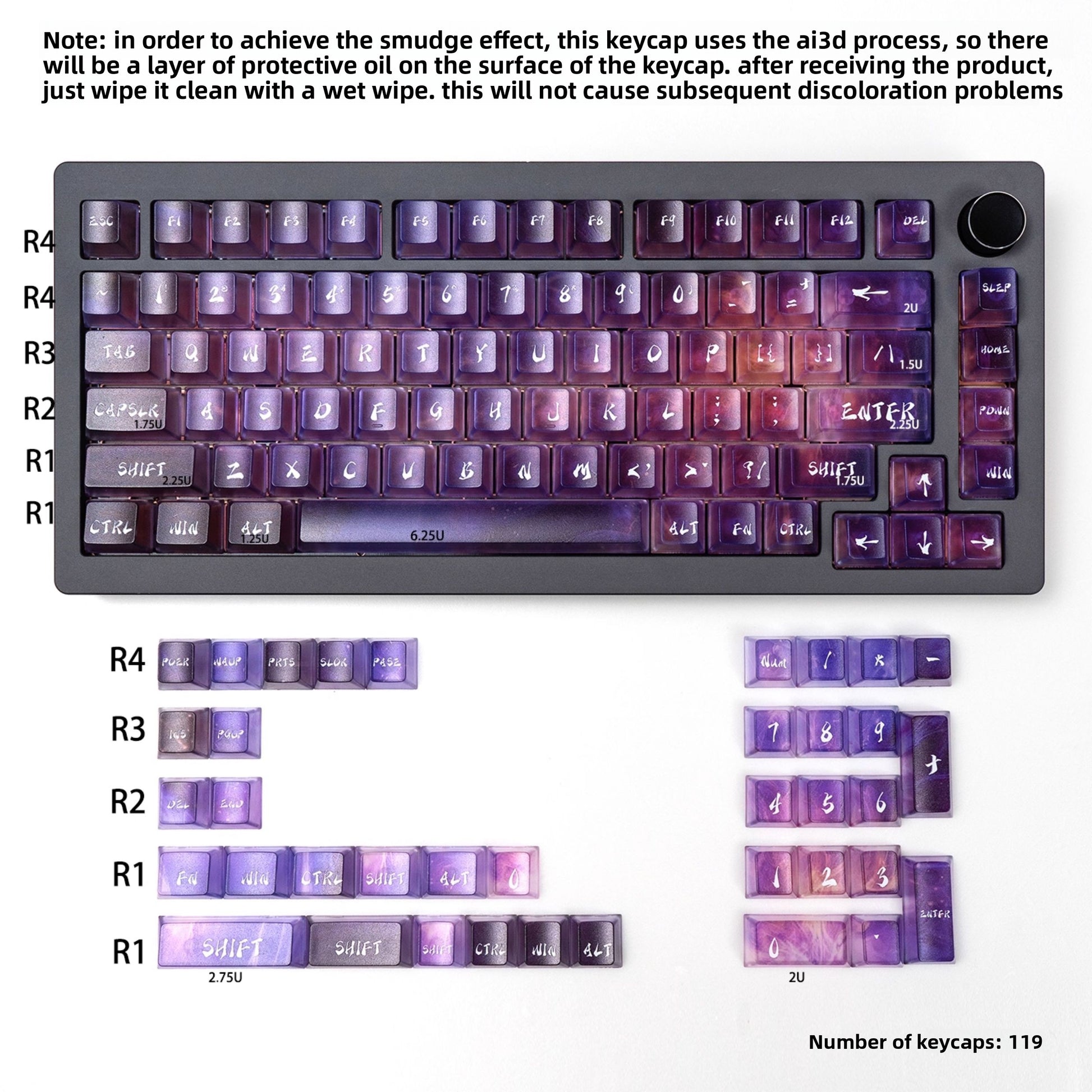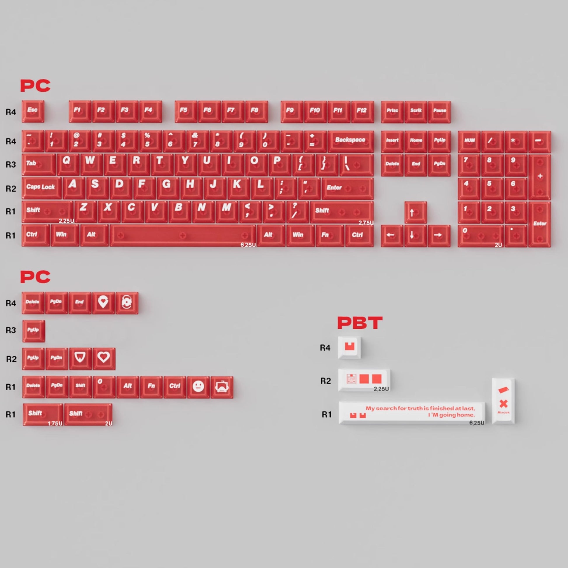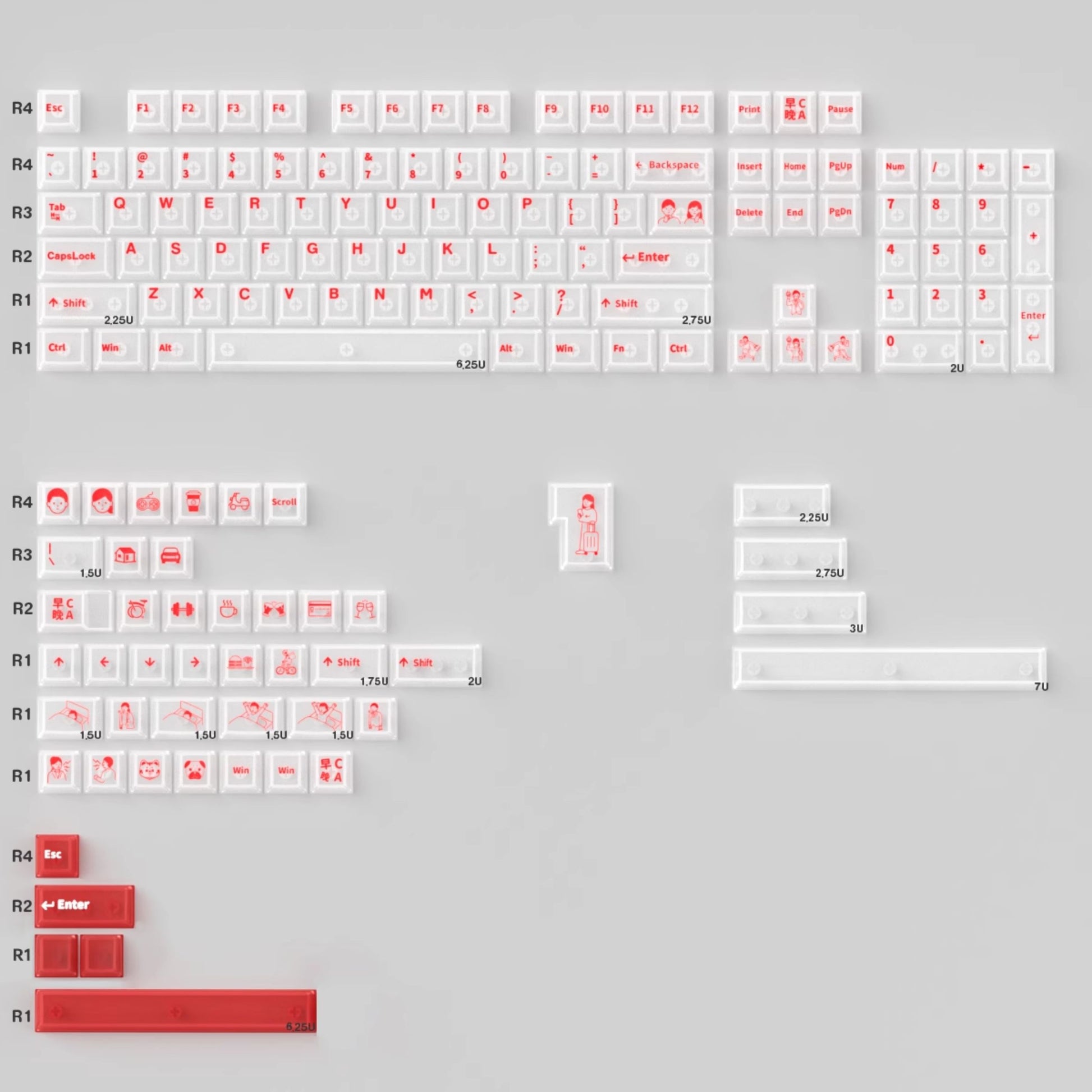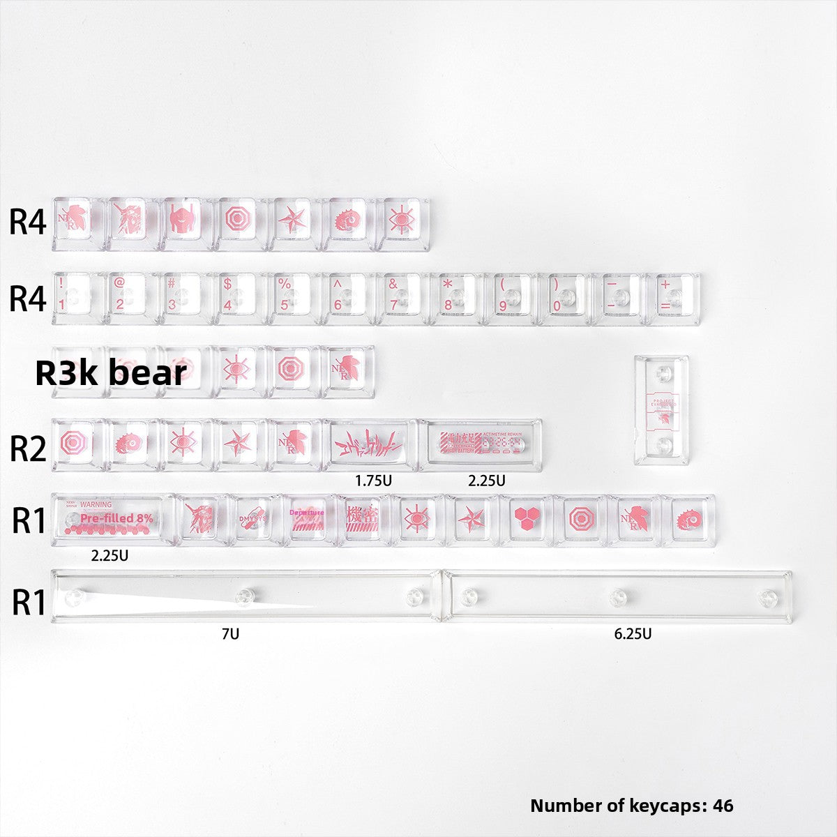 Number of Keys: Small Full Set 114 Keys, Heart Transparent 21 Keys, Large Full Set 149 Keys, Fog Transparent Large Characters129 keys Unit-01/Lilith/Unit-08/Unit-02 Transparent 46 Keys, Red/Blue/Pink Supplementary 10 Keys, Childlike White/Black 122 Keys, Interstellar Mist Transparent 153 Keys, Kai Zhou/Neon/Xing Sui 119 Keys
