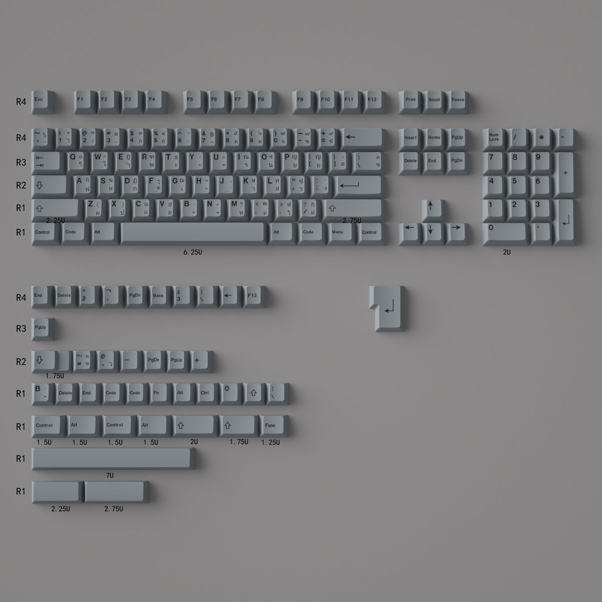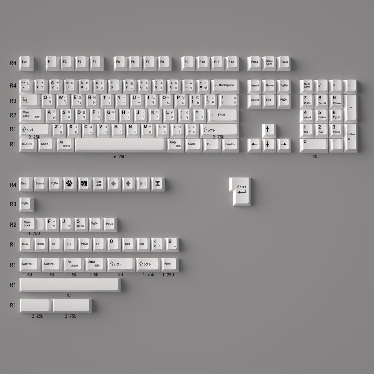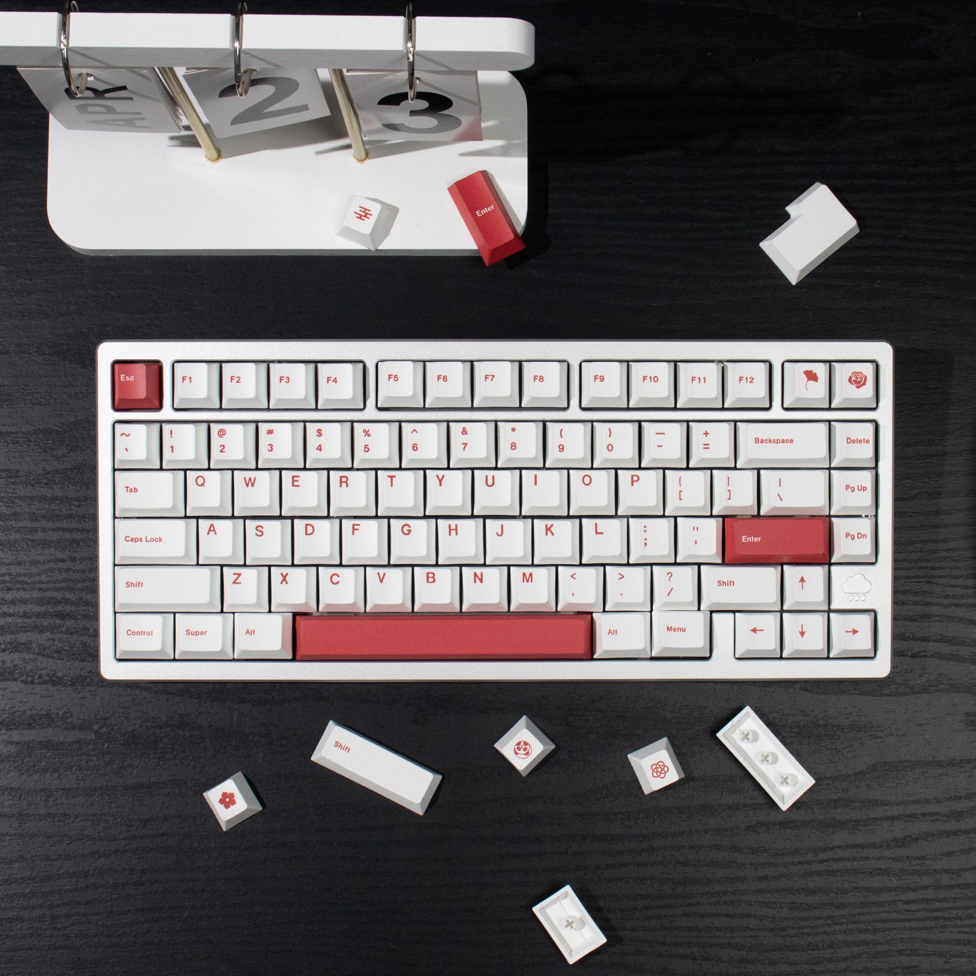 Number of Keys: White English/Japanese 129 Keys/Thai 143 Keys, Minimalist Red English 142 Keys, Japanese 143 Keys, White Red/White Green/White Black/White Pink Blue 148 Keys, Starry Sky Black 143 Keys, Desert Phonetic/English/Russian/Japanese/Thai 144 Keys, Minimalist Gray English 144 Keys/Thai 144 Keys, Same Moment Black English/Japanese 144 Keys/Thai 143 Keys, Hundred Lights 148 Keys, Purple Sweet Potato/Fairy 143 Keys