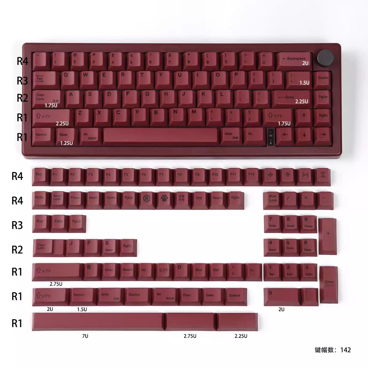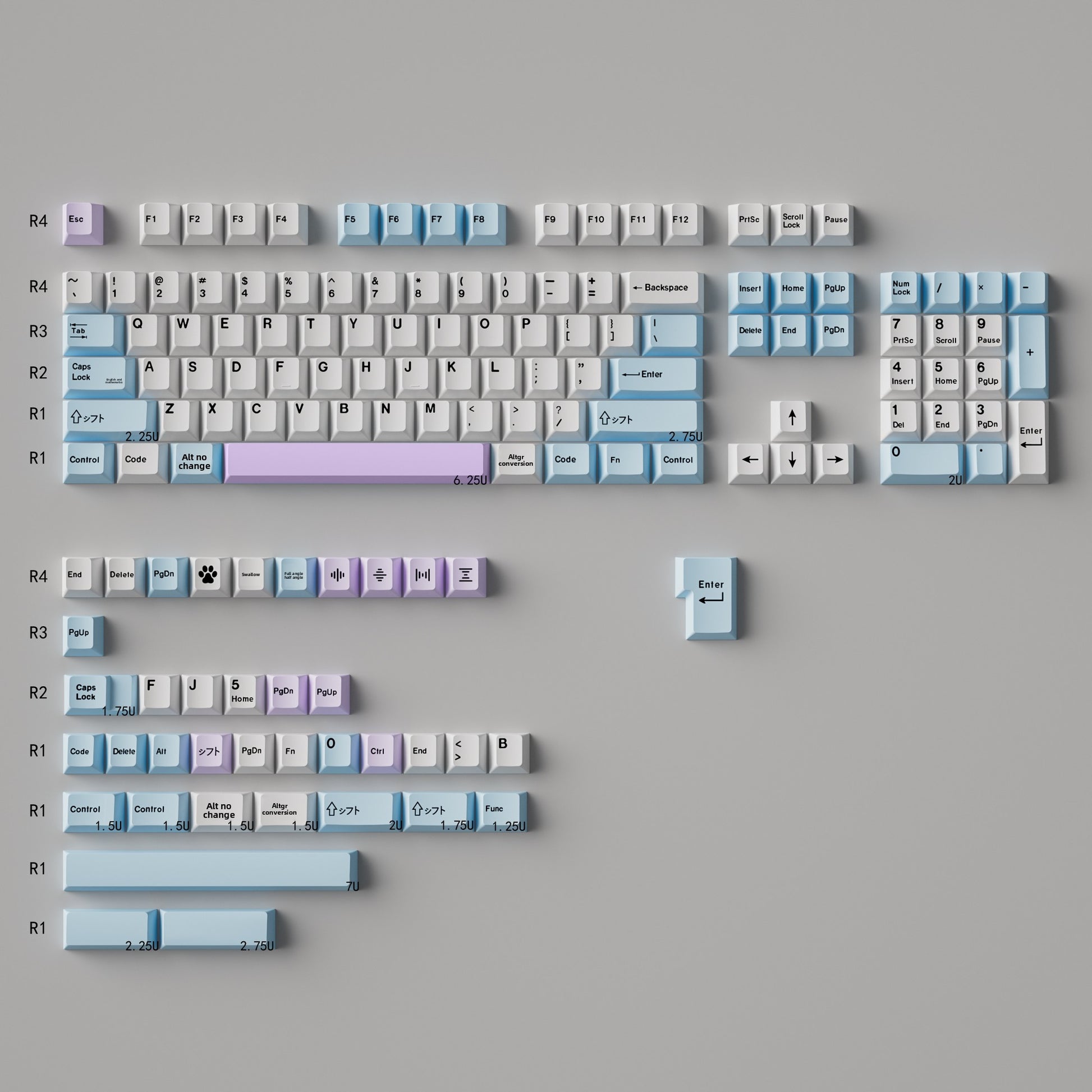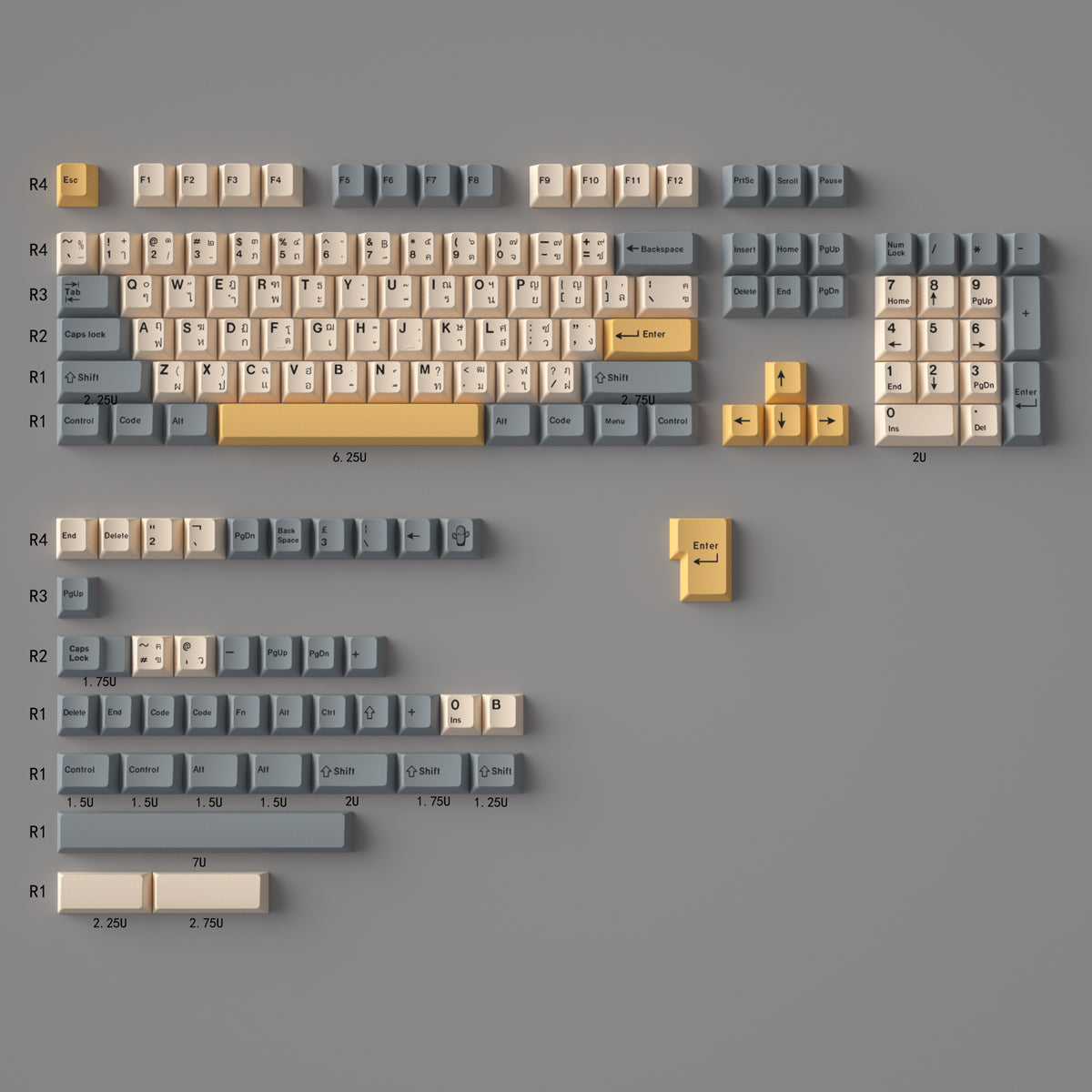 Number of Keys: White English/Japanese 129 Keys/Thai 143 Keys, Minimalist Red English 142 Keys, Japanese 143 Keys, White Red/White Green/White Black/White Pink Blue 148 Keys, Starry Sky Black 143 Keys, Desert Phonetic/English/Russian/Japanese/Thai 144 Keys, Minimalist Gray English 144 Keys/Thai 144 Keys, Same Moment Black English/Japanese 144 Keys/Thai 143 Keys, Hundred Lights 148 Keys, Purple Sweet Potato/Fairy 143 Keys