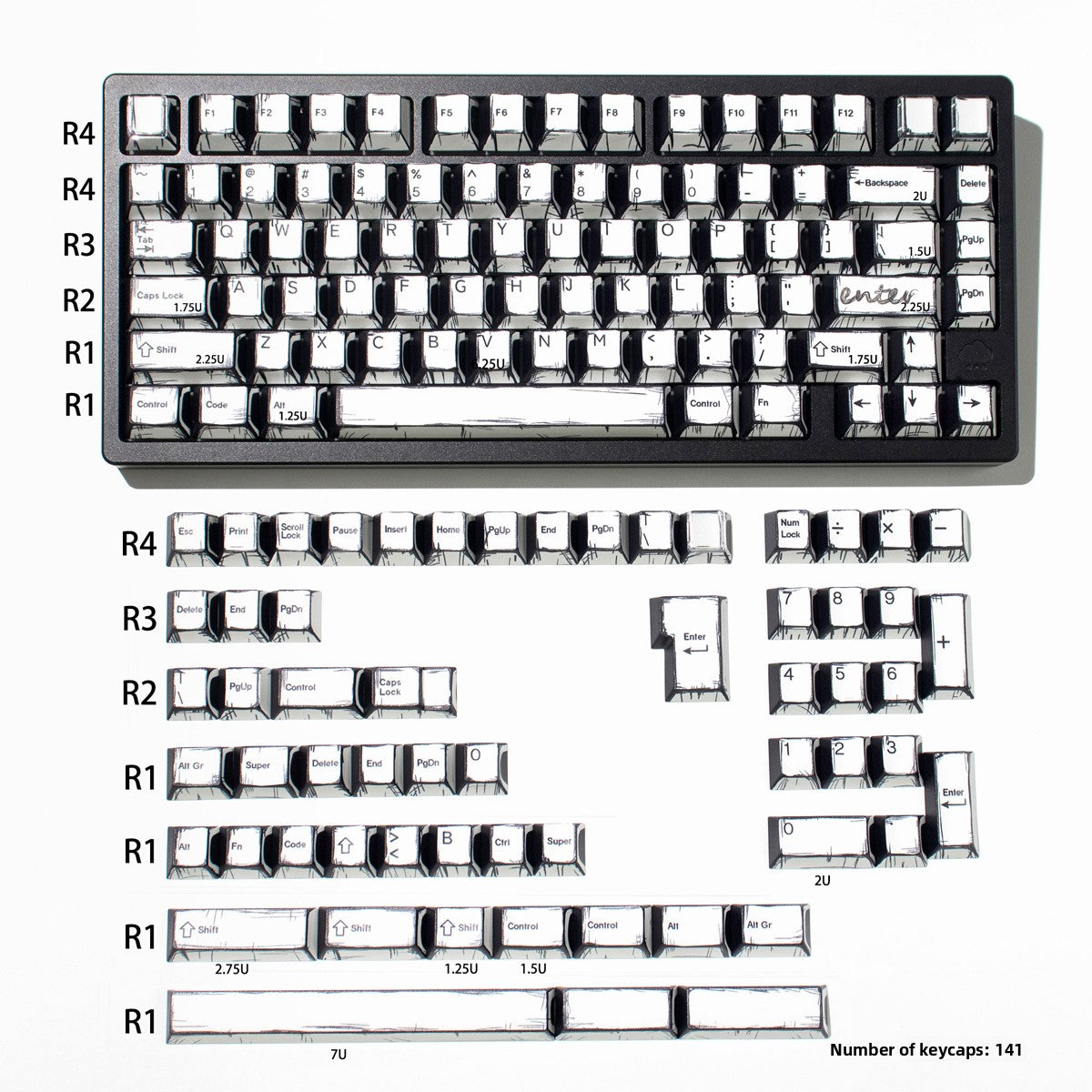 Aifei Keycap Set Manga White PBT Cherry Profile Compatible with Wooting