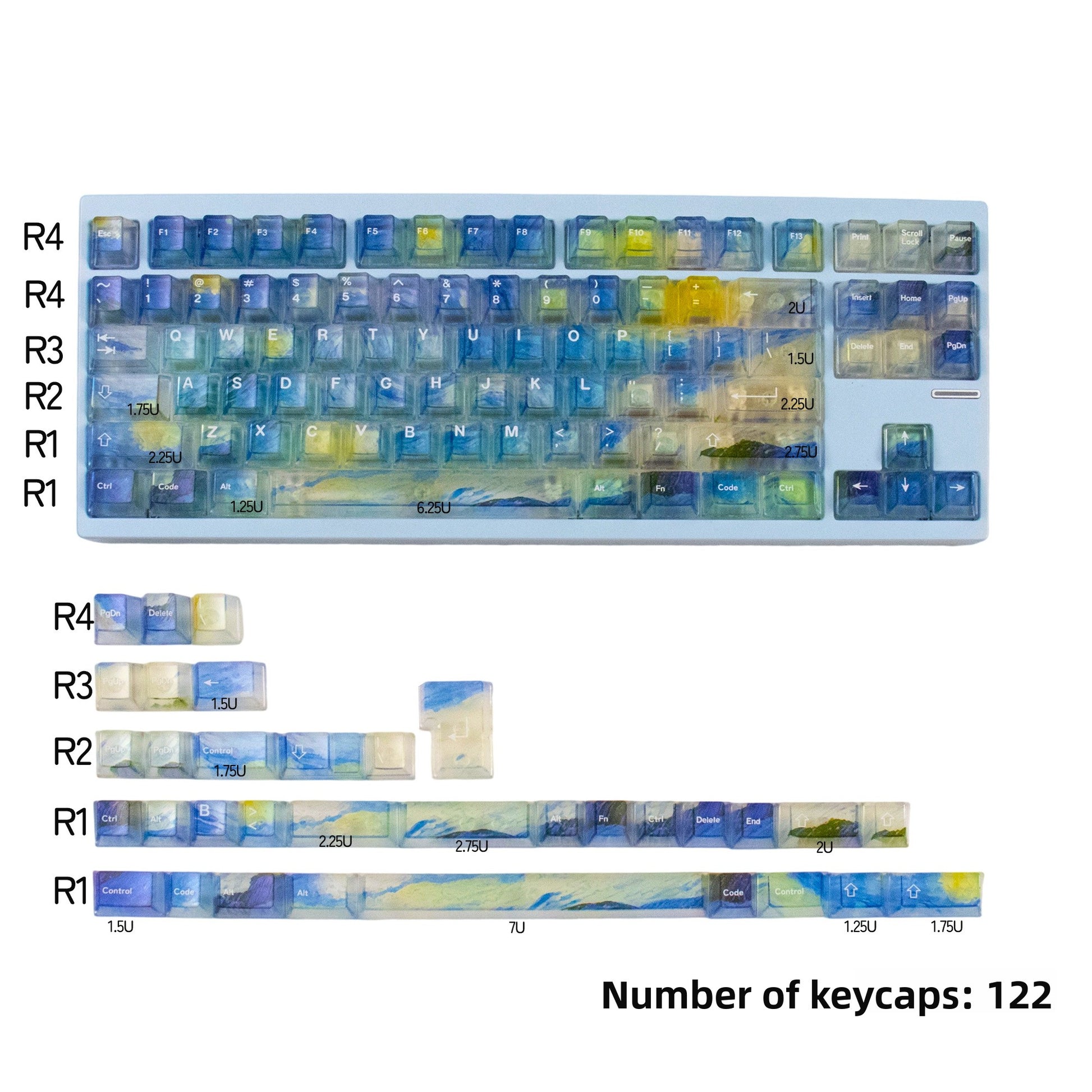Number of Keys: Small Full Set 119 Keys, Qingwu/Lanyin/Luoxia/Rose Sorrow/Van Gogh's Starry Night 122 Keys