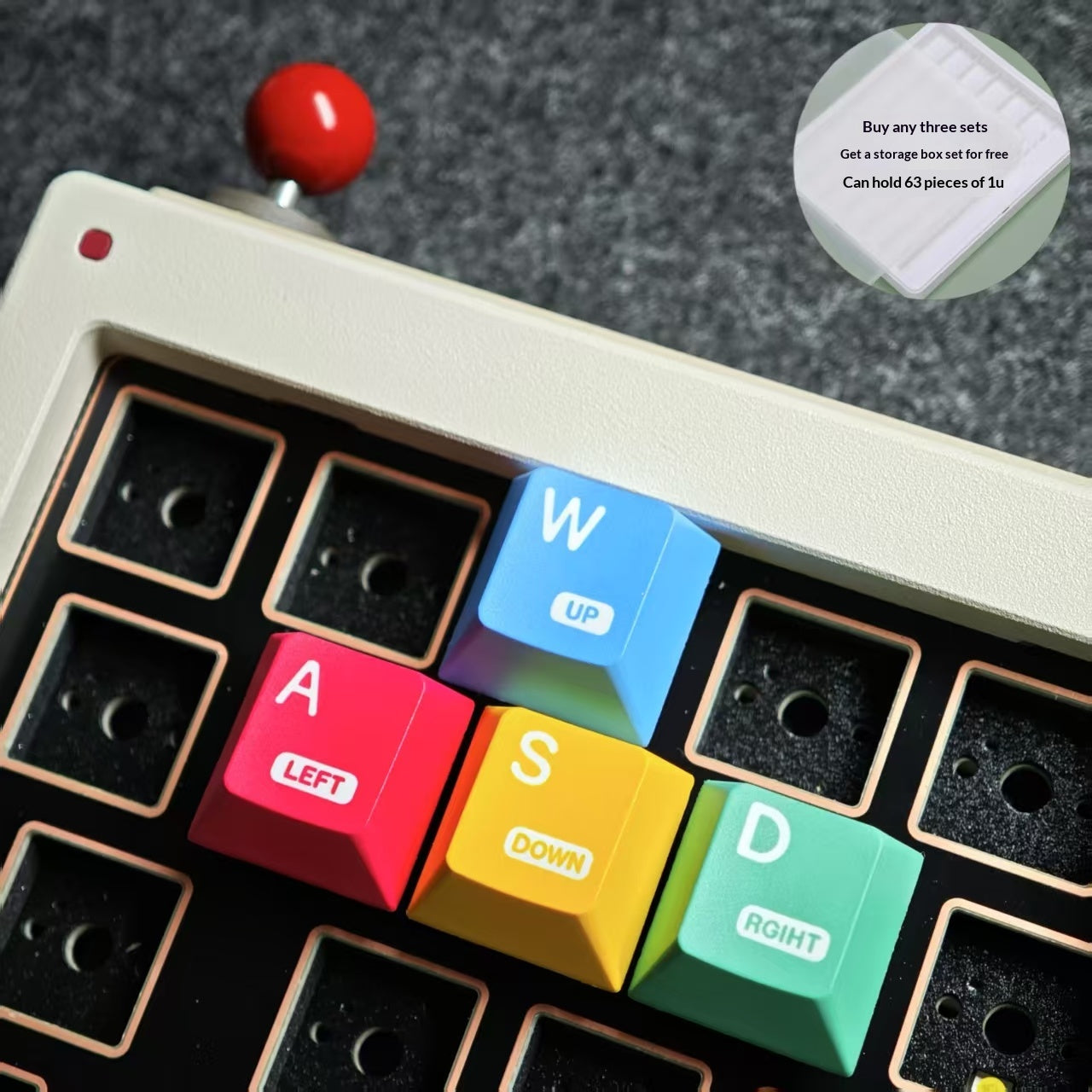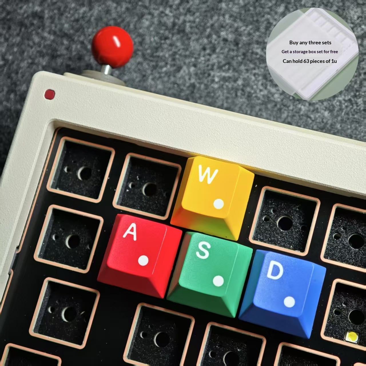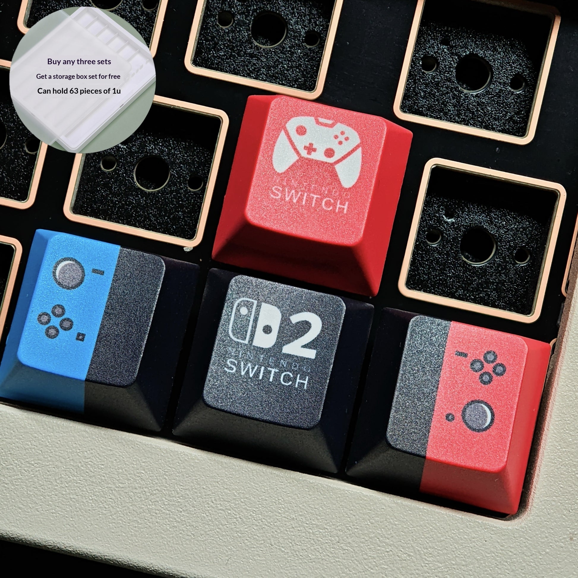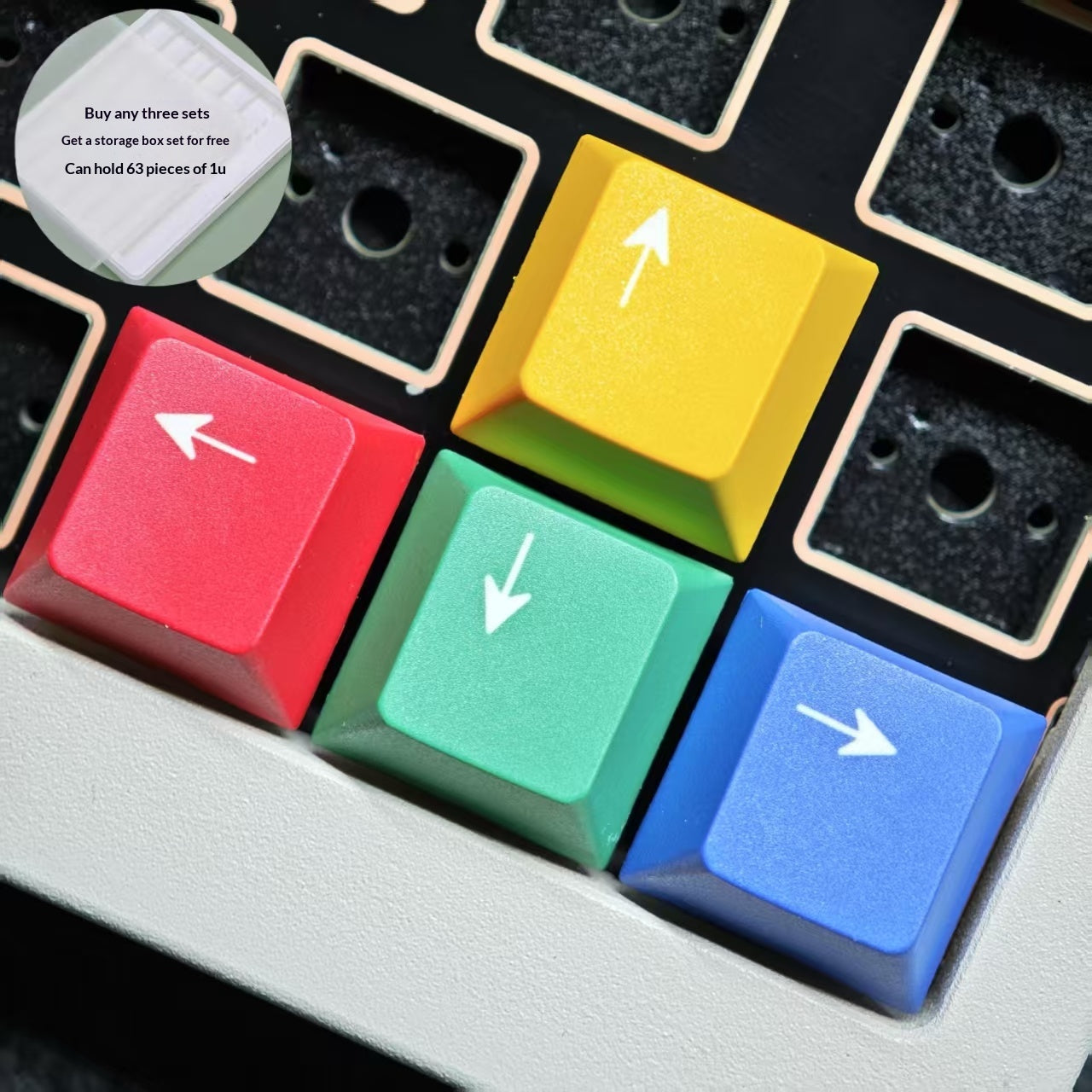 Storage case can hold63 pcs of 1u square keycaps