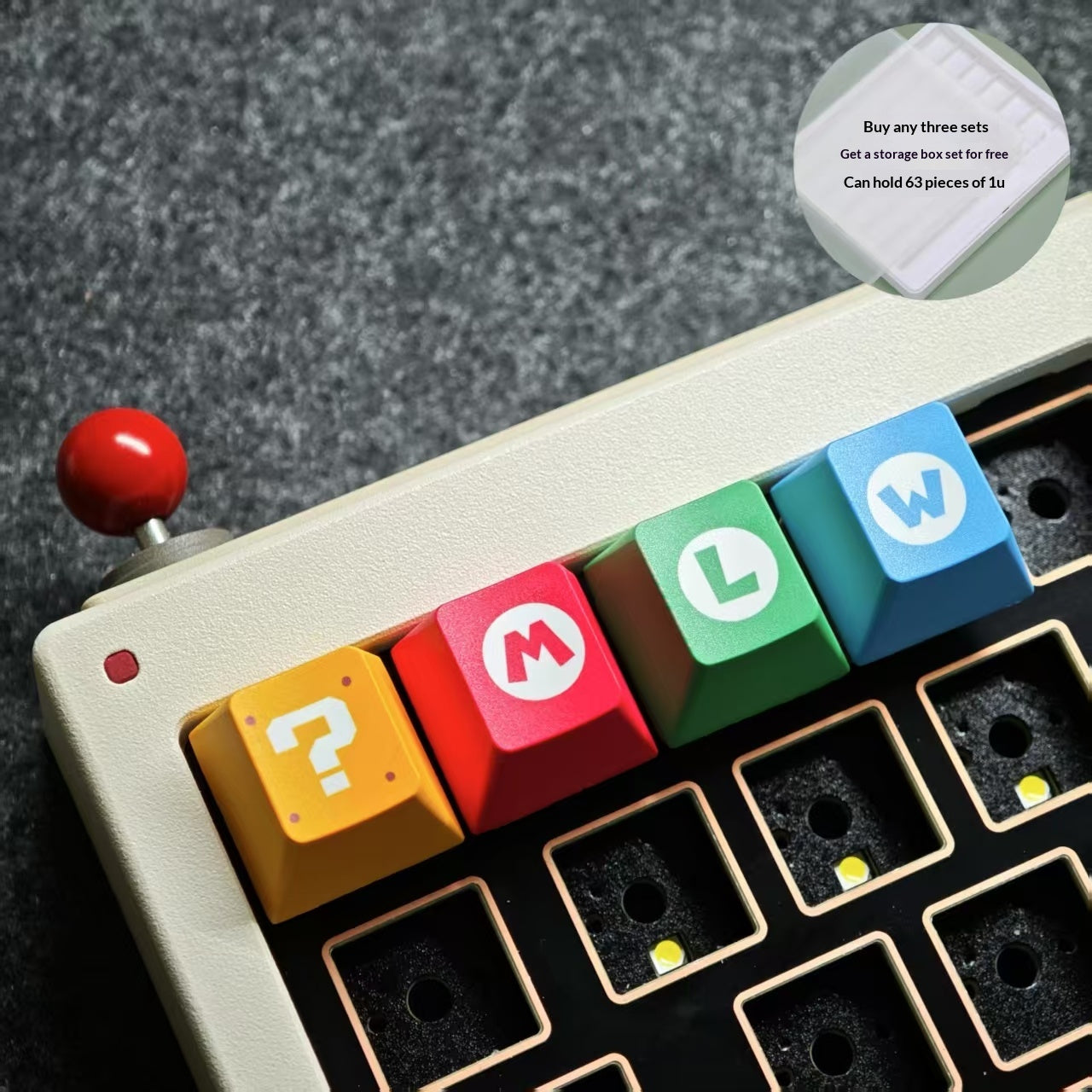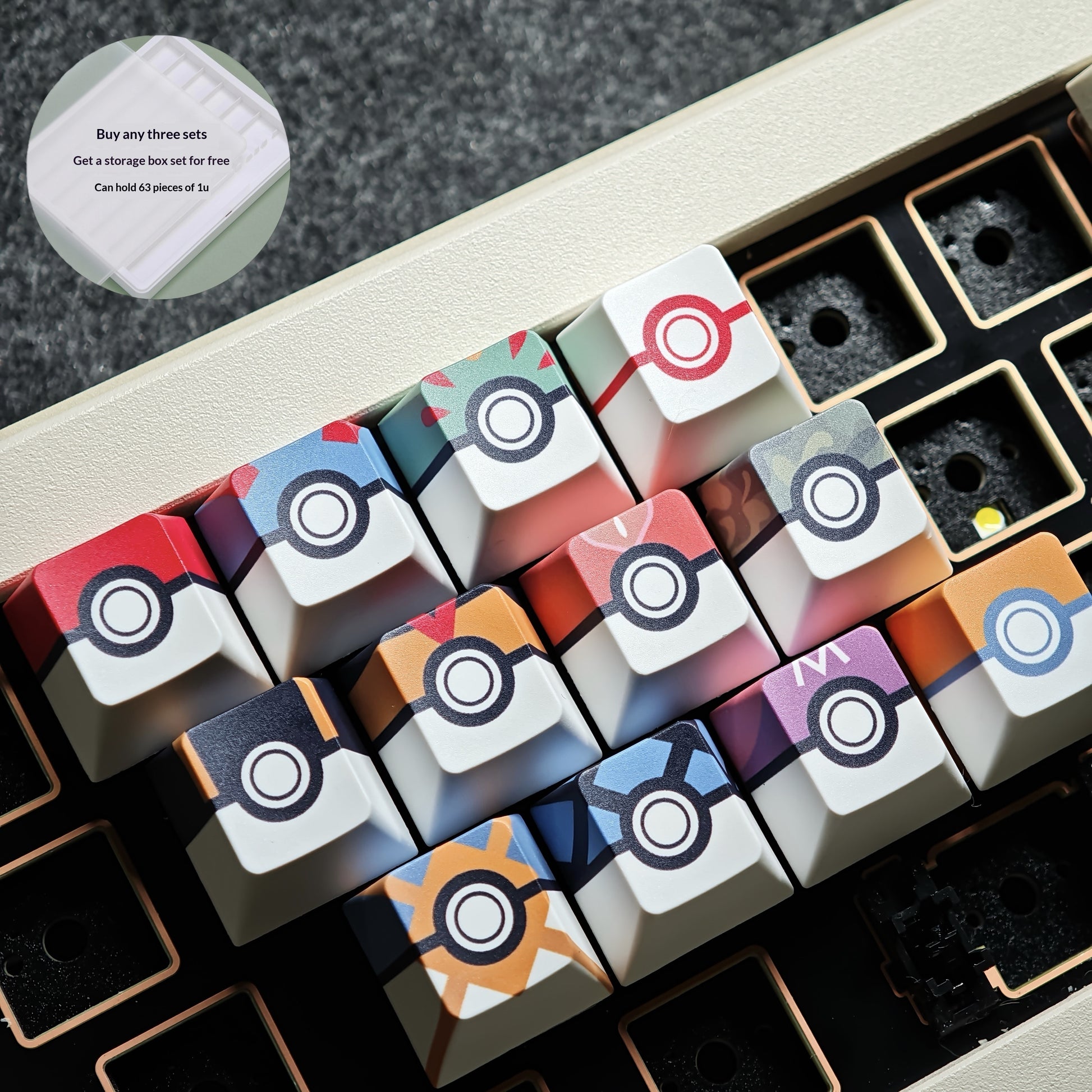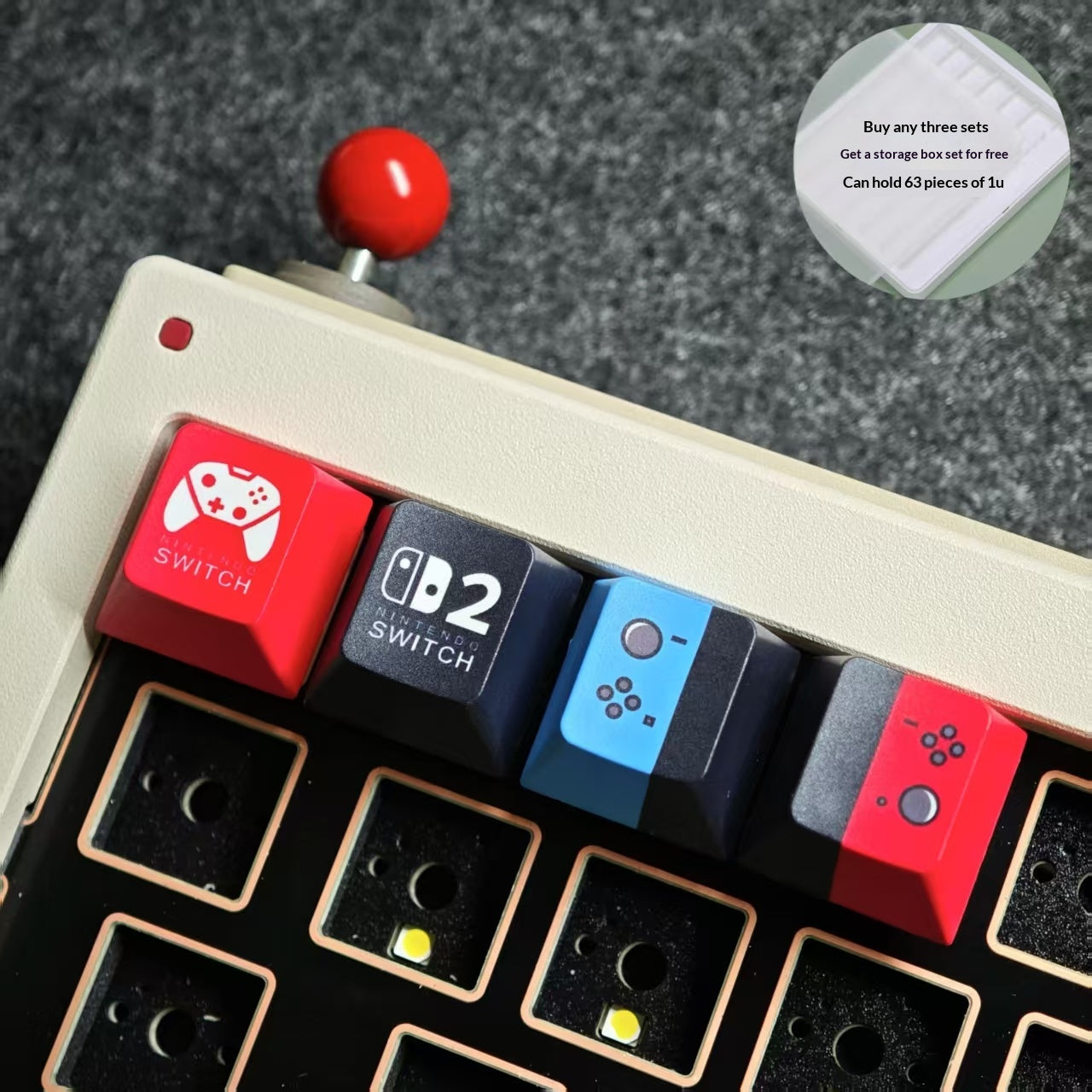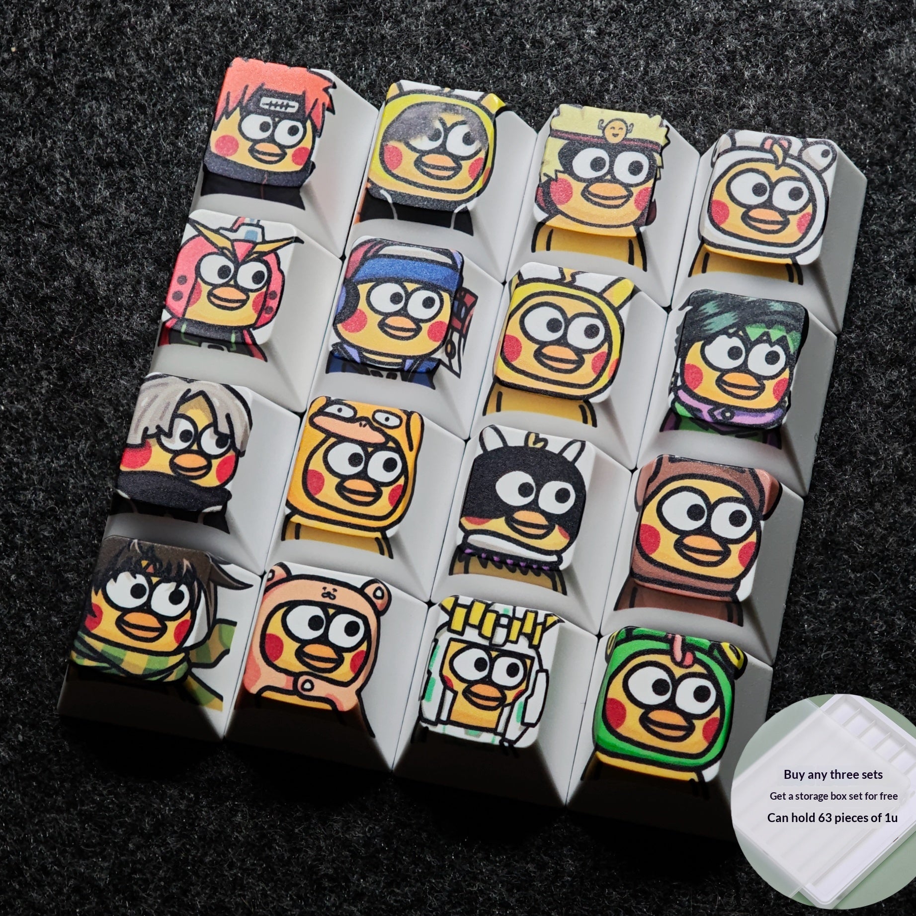 Storage case can hold63 pcs of 1u square keycaps