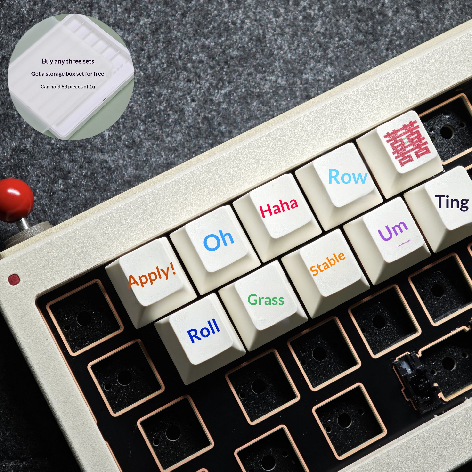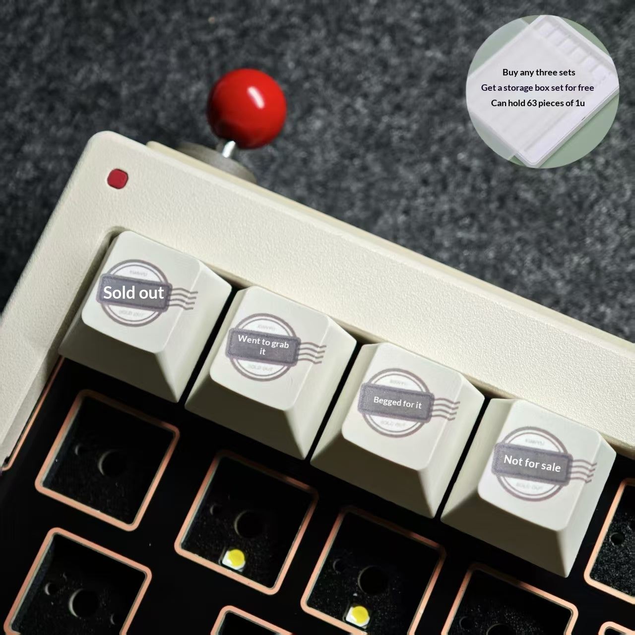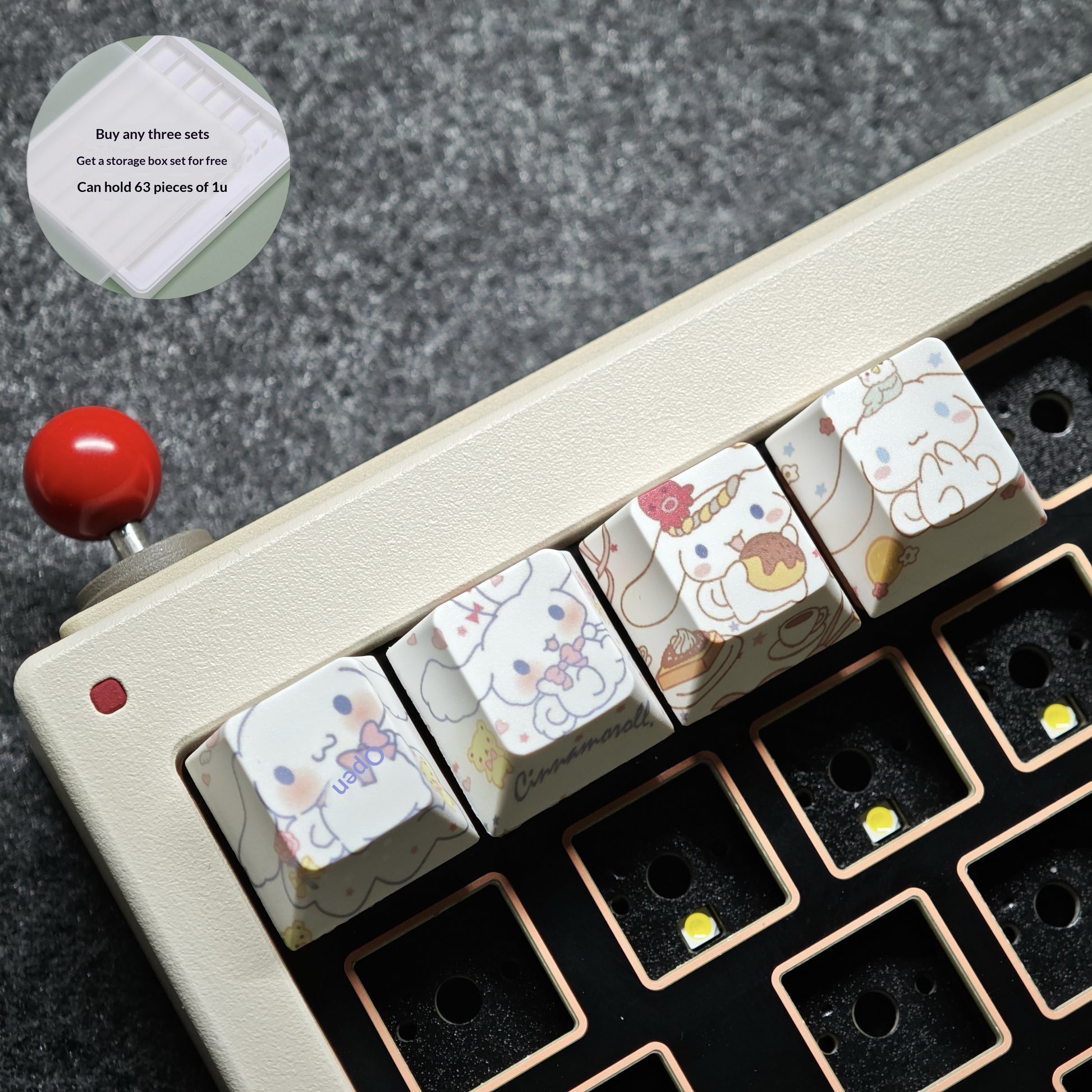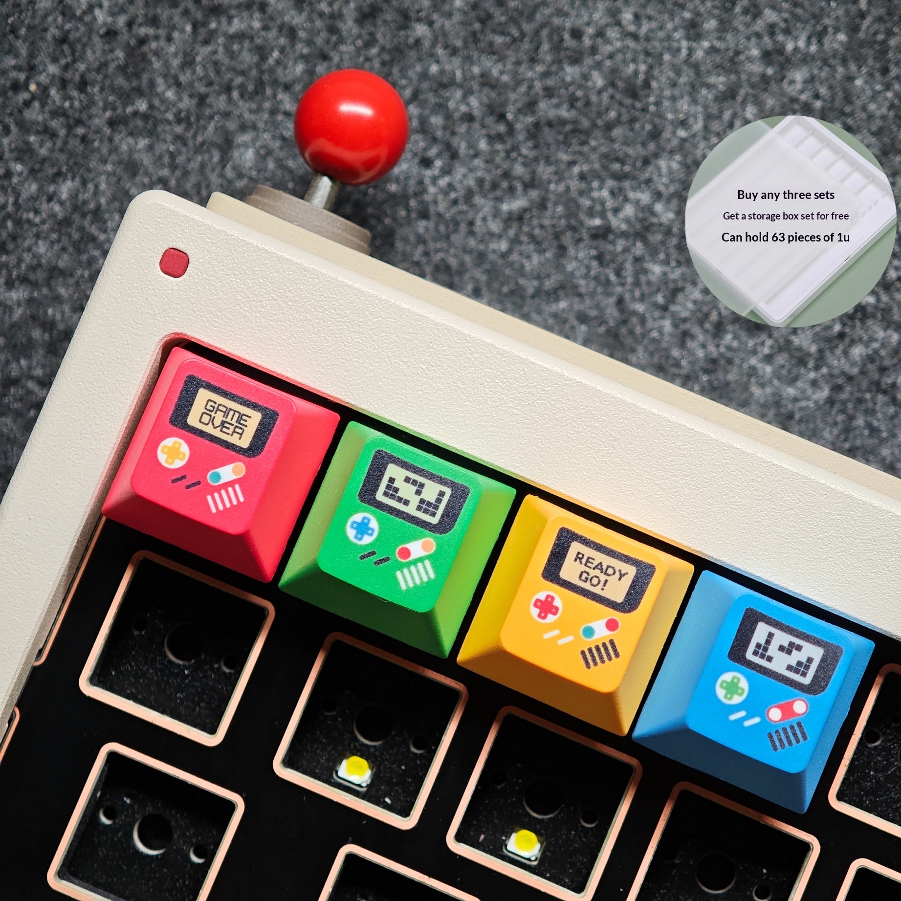 Storage case can hold63 pcs of 1u square keycaps